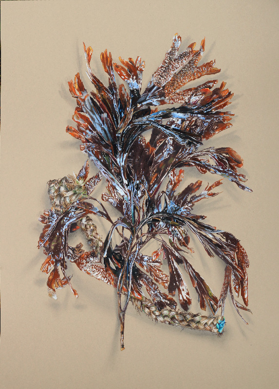 Cette série est constituée de dessins d' algues dans lesquelles s'entremêlent un cordage. Ton sur ton il n'apparait que dans un second temps, laissant voir tout d'abord la beauté de l'algue, puis la pollution dont la mer est victime.